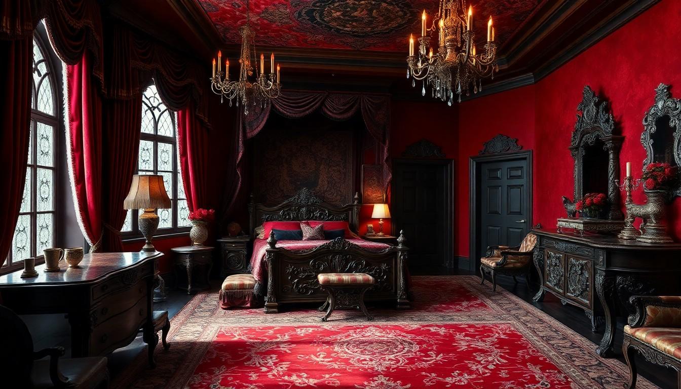 Incorporating dark, rich color schemes is essential for achieving a gothic atmosphere. Deep reds, blacks, and purples create an intimate mood. Adding metallic accents in gold or silver enhances the elegance of the space.